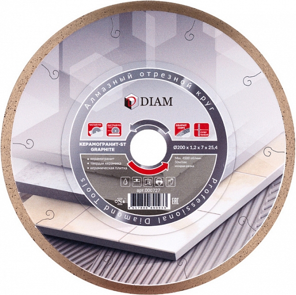 - За счет своей конструкции и отличных рабочих характеристик один из лучших дисков на рынке для качественной резки керамического гранита и твердой напольной и уличной керамики