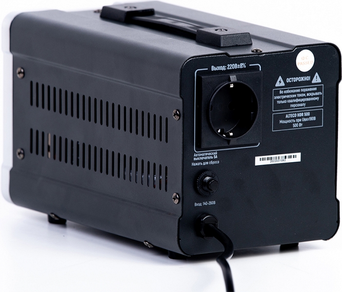 Автоматический cтабилизатор напряжения Alteco HDR 500 (Альтеко ХДР 500) предназначен для обеспечения стабильным напряжением подключенных к нему устройств. Широко используется в бытовых и промышленных сферах для защиты техники от аварийных скачков электроэнергии.