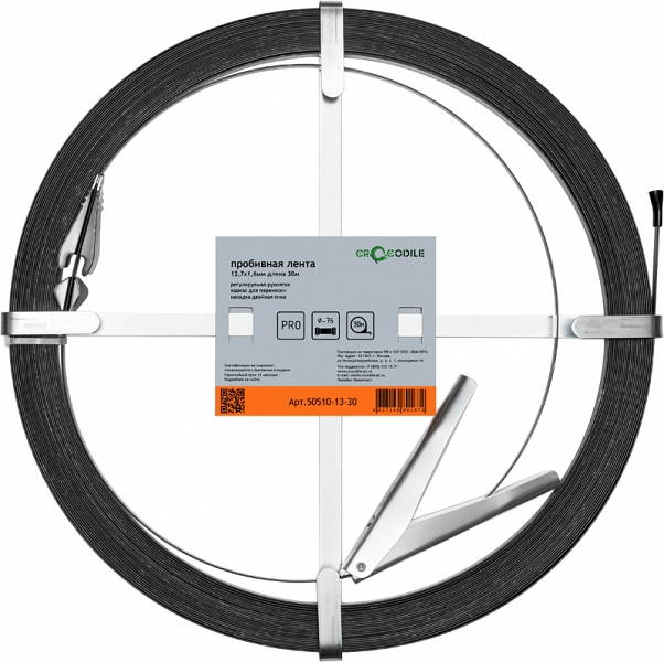 Лента для прочистки канализационных труб Crocodile 15 м × 19 мм × 3,2 мм (Крокодил 15 m × 19 mm × 3,2 mm) – пробивная лента для сложных засоров, самый надежный ручной инструмент для удаления засоров в прямых трубах Ø до 160 мм, длиной до 15 м. Эффективно передает удар оператора на спрессованный ил, щебень, камни, стекло и пластик.