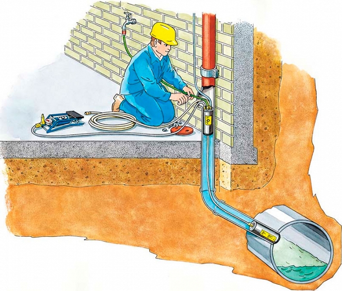 - При помощи шланга для накачивания и подающего шланга пневмозаглушку надувают до тех пор, пока она не достигнет раструба магистрального канализационного канала